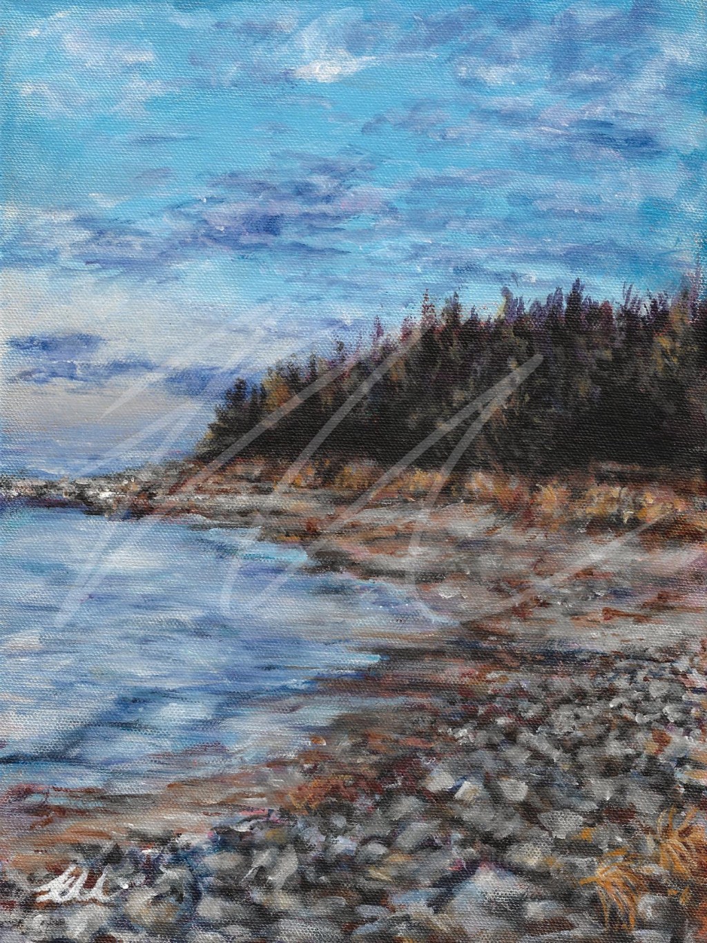 “Ocean Shore” is a part of the perpetual calendar collection. Original painting is for sale. Fill out the contact form for more info. Size 9”x12”$110